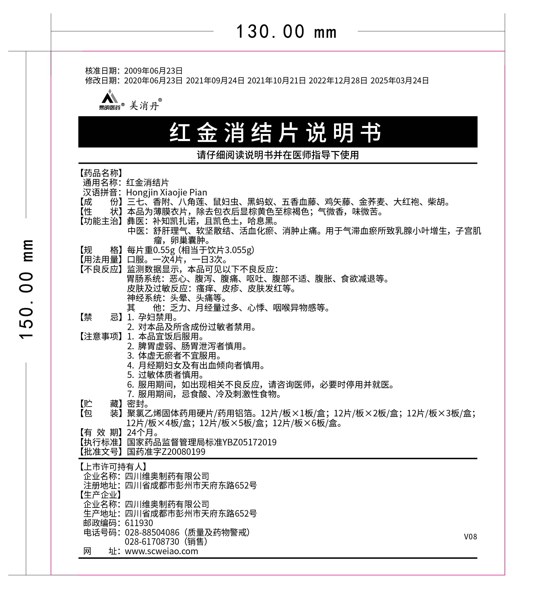 192025-09我司對紅金消結(jié)片說明書(批準文號:國藥準字Z20080199)進行修訂